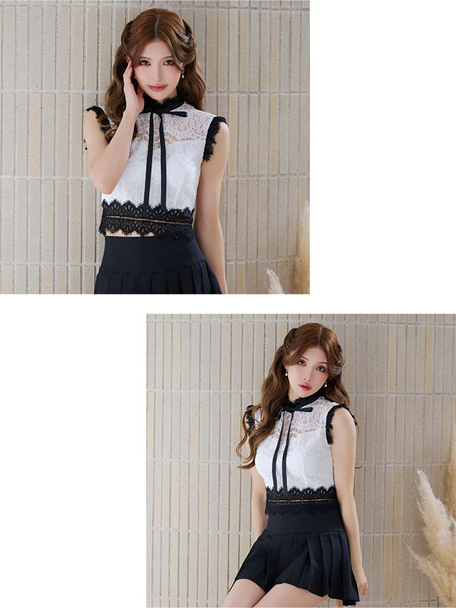 他の画像を見る 品のある可愛さとお洒落を演出♪ [SUPER SALE] 韓国ドレス Aラインミニドレス セットアップ ノースリーブ ネックリボン レーストップス 胸元カバー プリーツスカート (Sサイズ/Mサイズ) (ゆんころ着用) [Anella] ¥ 31,900 ¥ 19,800 税込 詳細を見る お気に入りに追加