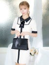 他の画像を見る 落ち着いたモノトーン☆ [SUPER SALE] 韓国ドレス タイトミニドレス 半袖 バイカラー リボン 胸元カバー 襟付き (Sサイズ/Mサイズ) (伊藤舞雪着用) [Anella] ¥ 24,200 ¥ 14,300 税込 詳細を見る お気に入りに追加