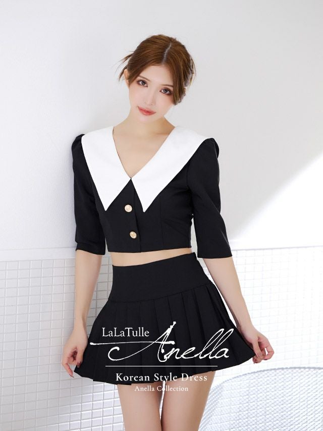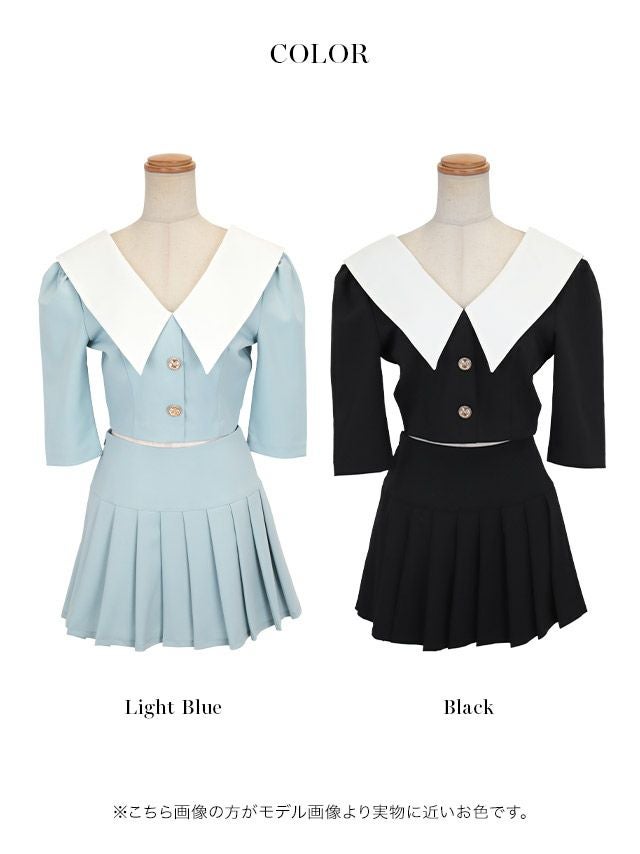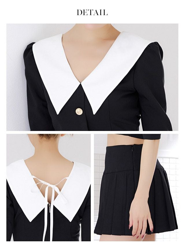 他の画像を見る 制服チックで可愛い♪ [SUPER SALE] 韓国ドレス Aラインミニドレス セットアップ 袖あり 七分袖 襟付き ショートトップス プリーツスカート (Sサイズ/Mサイズ) (伊藤舞雪着用) [Anella] ¥ 31,900 ¥ 17,600 税込 詳細を見る お気に入りに追加