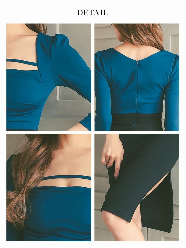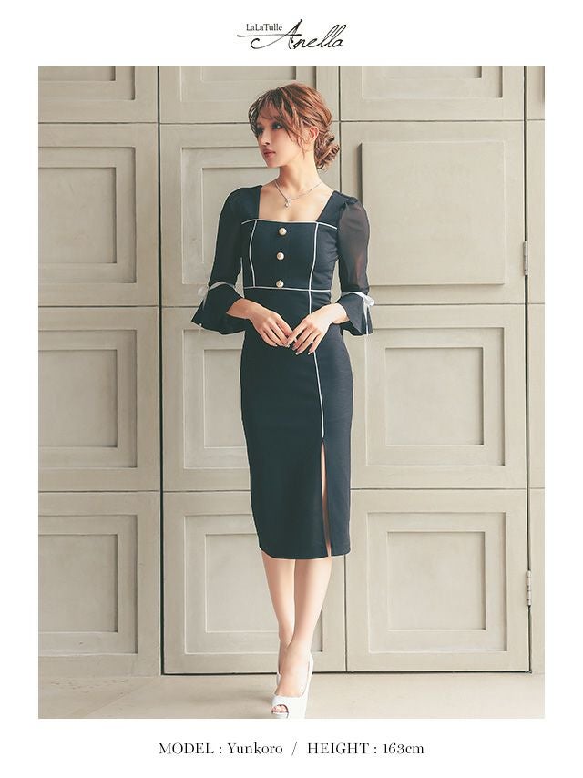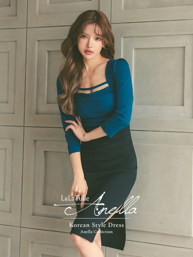 他の画像を見る 大人の余裕を醸し出す♪ [韓国ドレス] タイト膝丈ドレス 袖あり 七分袖 スリット バイカラー スクエアネック コード (Sサイズ~Lサイズ) (ゆんころ着用) [Anella] ¥ 15,400 税込 詳細を見る お気に入りに追加