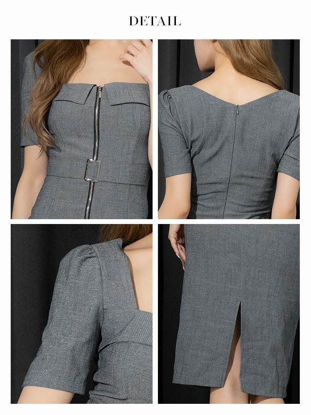 他の画像を見る スタイリッシュな印象に♪ [韓国ドレス] タイト膝丈ドレス 半袖 ジップ ウエストベルト 大人 スクエアネック (Sサイズ~Lサイズ) (ゆんころ着用) [Anella] ¥ 15,400 税込 詳細を見る お気に入りに追加