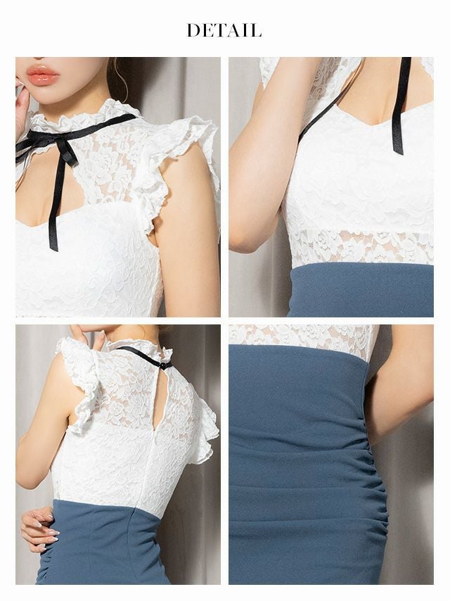 他の画像を見る 気品溢れる大人レディに♪ [韓国ドレス] タイト膝丈ドレス 谷間 ノースリーブ フリル袖 ネックリボン カットアウト ハイネック レース切替 大人 (Sサイズ~Lサイズ) (ゆんころ着用) [Anella] ¥ 15,400 税込 詳細を見る お気に入りに追加