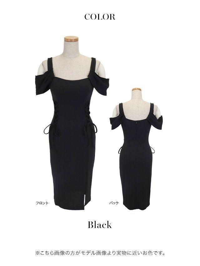他の画像を見る シンプルながらも色気溢れる♪ [韓国ドレス] タイト膝丈ドレス 肩出し サイドレースアップ スリット ワンカラー 大人 (Sサイズ~Lサイズ) (ゆんころ着用) [Anella] ¥ 16,280 税込 詳細を見る お気に入りに追加