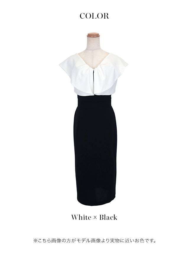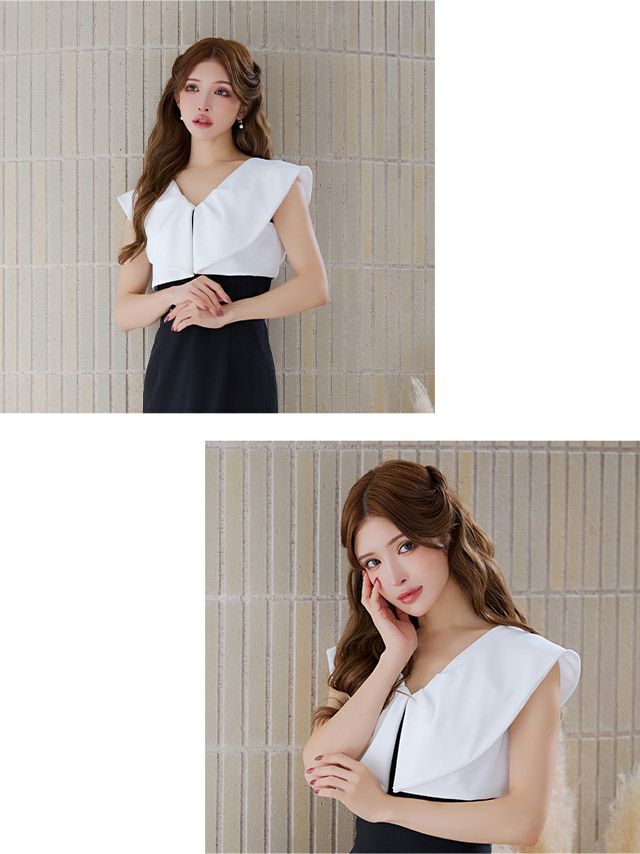 4. [SALE] [韓国ドレス] タイト膝丈ドレス ノースリーブ バイカラー 大人 (Sサイズ~Lサイズ) (ゆんころ着用) [Anella]
