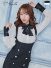 4. [SALE] 韓国ドレス タイト膝丈ドレス 長袖 袖あり ネックリボン 襟付き 胸元カバー バイカラー サロペット風 (Sサイズ~Lサイズ) (一条響着用) [Anella]