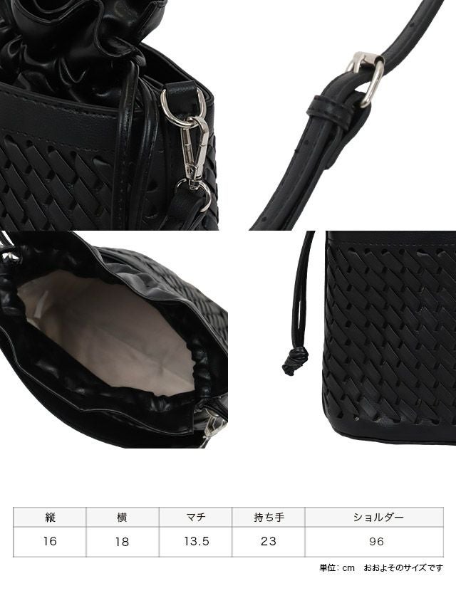 2Wayショルダー付きワンカラー巾着ミニバッグのディティール サイズ表