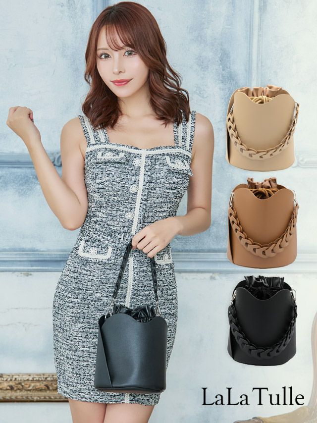チェーン付きワンカラーフェイクレザー2Wayミニバッグのカラーバリエーション画像