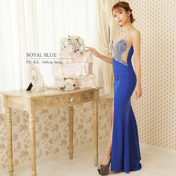 4. ウエストシースルー高級ロングドレス