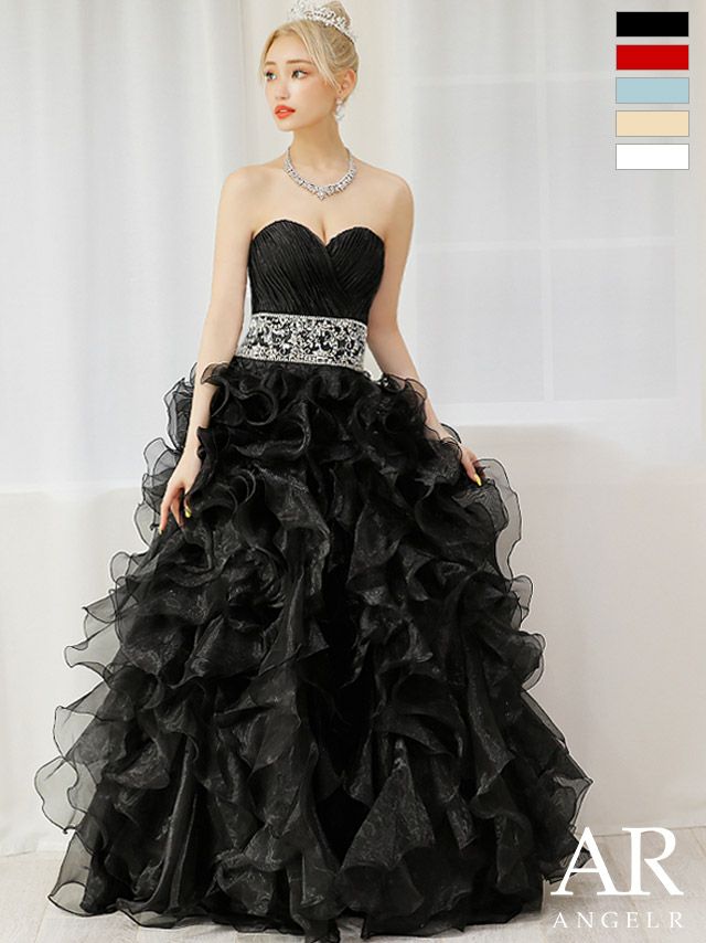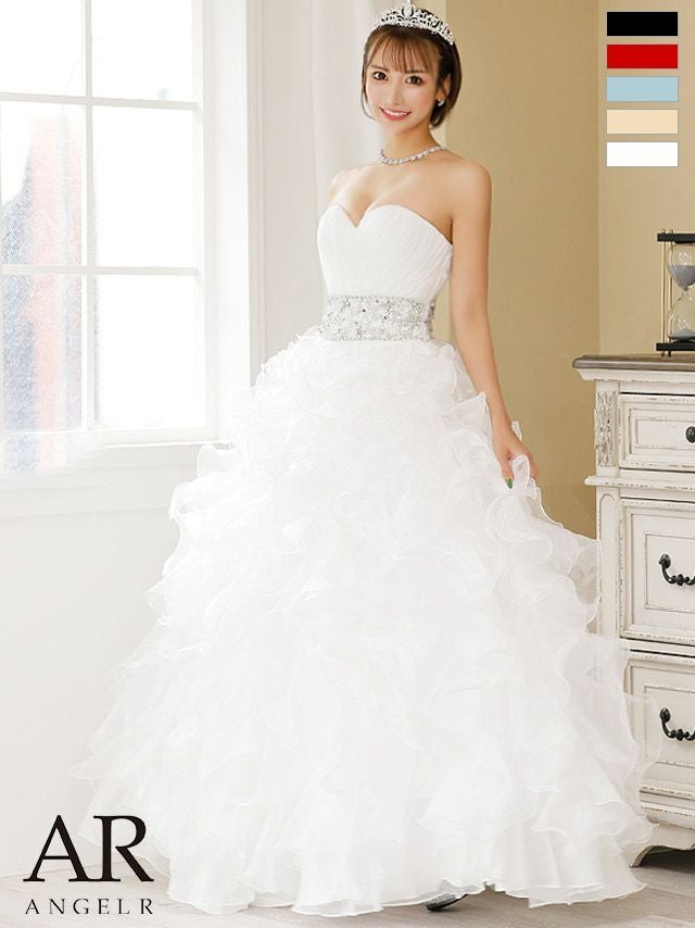 Angel-R エンジェルアール 高級コルセット風ビジューデザインバックレースフリルベアトップフレアウェディングバースデードレス
