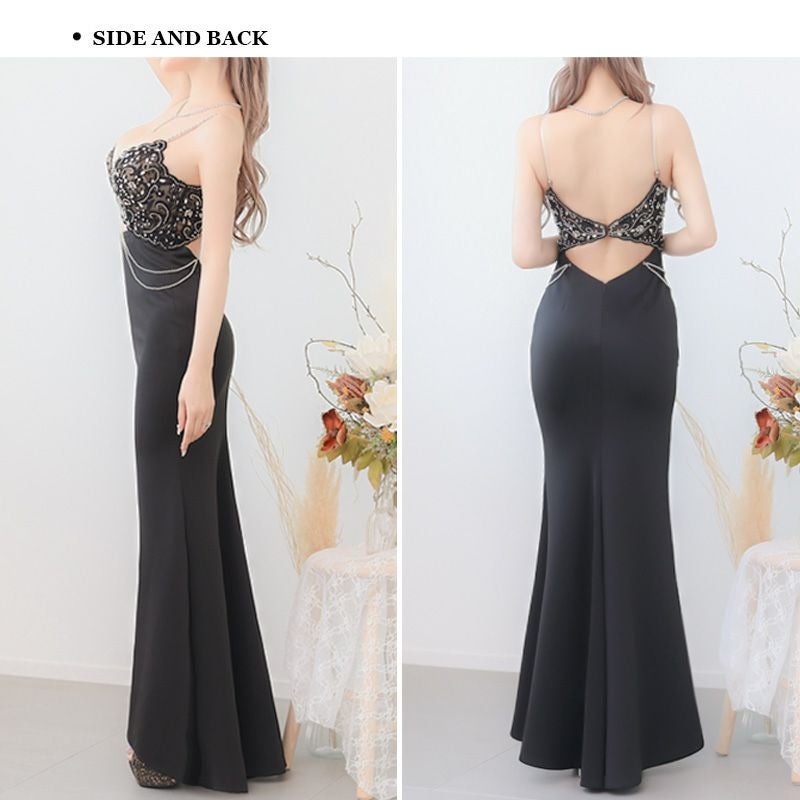 6. [Angel-R/エンジェルアール] 高級 バストシースルー キャミソール ビジュー ウエストカット ストレッチ 谷間魅せ タイトロングドレス