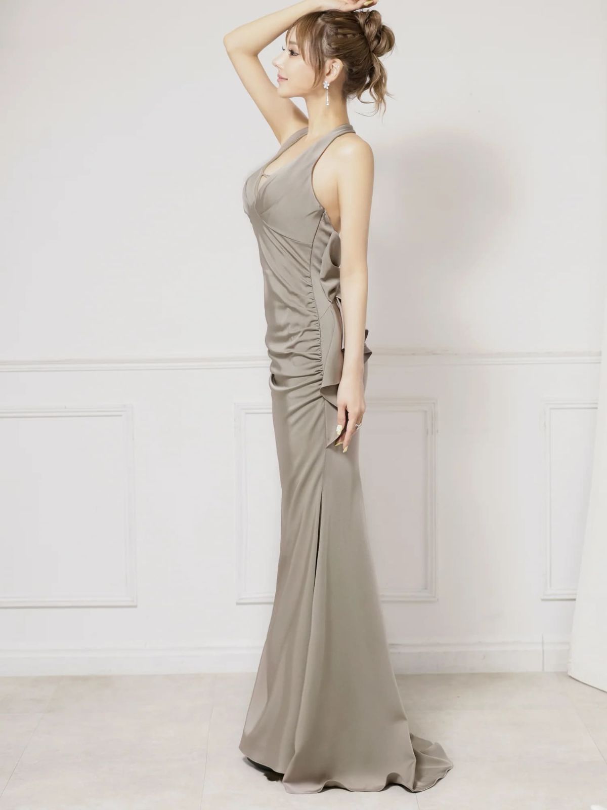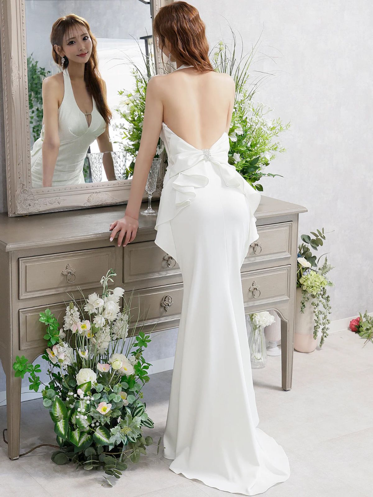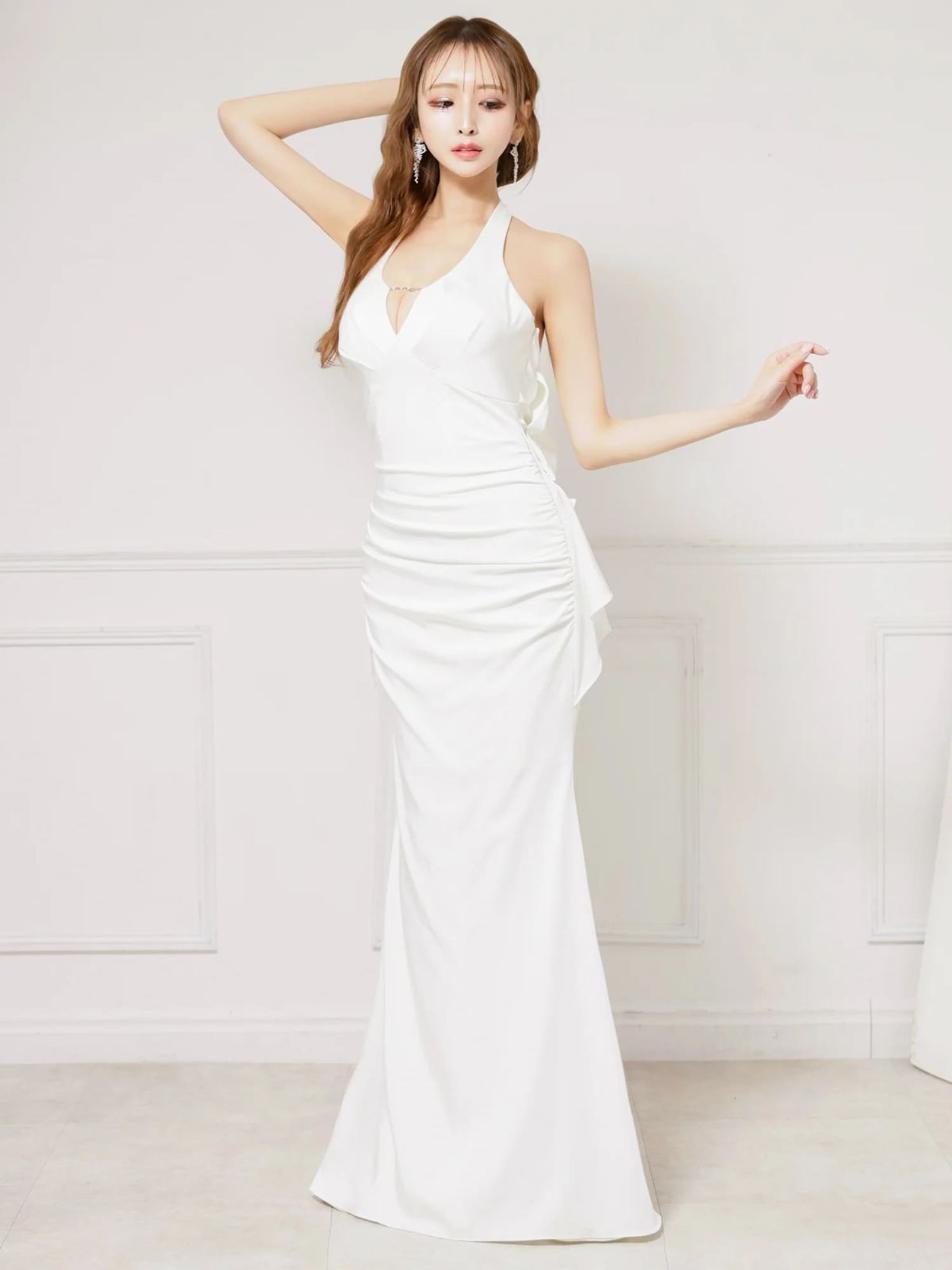 4. [Angel-R/エンジェルアール] 高級 バースデー ホルターネック 背中魅せ バックリボン バストカット 谷間魅せ タックデザイン マーメイドロングドレス