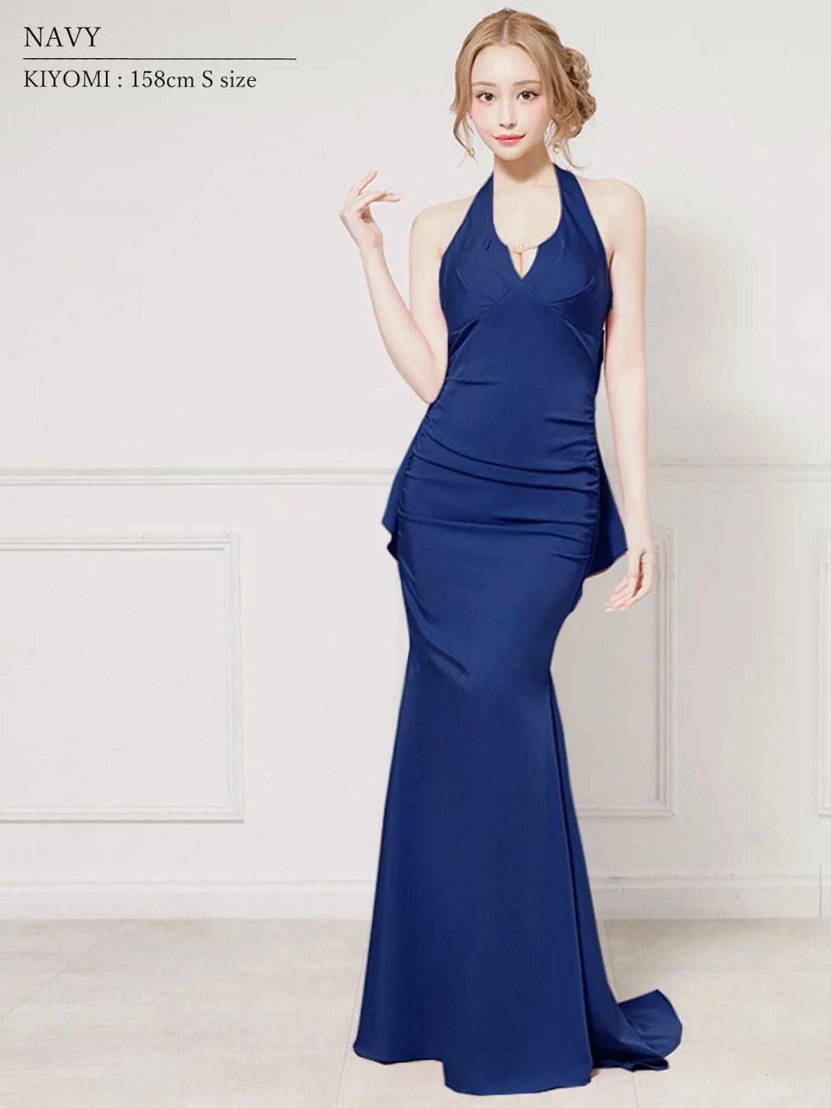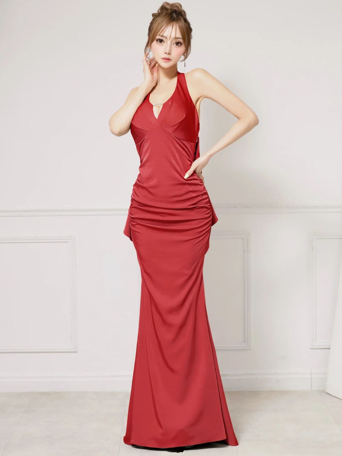 5. [Angel-R/エンジェルアール] 高級 バースデー ホルターネック 背中魅せ バックリボン バストカット 谷間魅せ タックデザイン マーメイドロングドレス