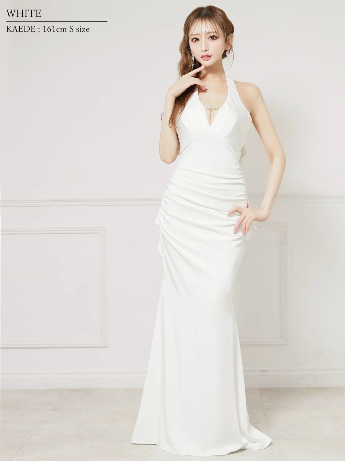 3. [Angel-R/エンジェルアール] 高級 バースデー ホルターネック 背中魅せ バックリボン バストカット 谷間魅せ タックデザイン マーメイドロングドレス