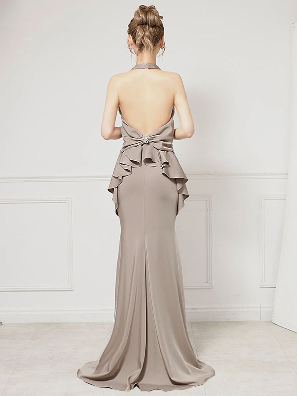 4. ホルターネックの高級ロングドレス