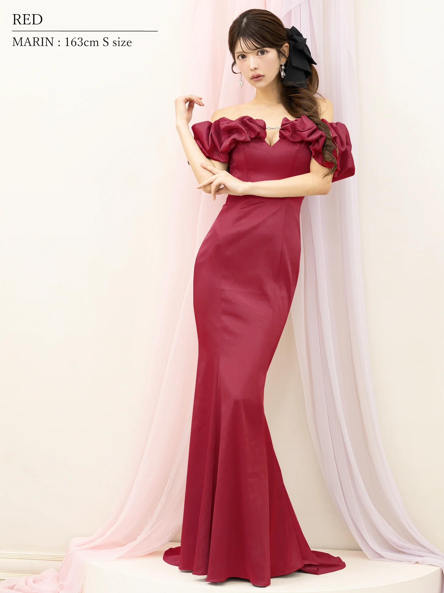 ワンランク上へと導く1着☆ [Angel-R/エンジェルアール] 高級 オフショルダー 胸元フリル チャーム バストカット 谷間魅せ マーメイドロングドレス
