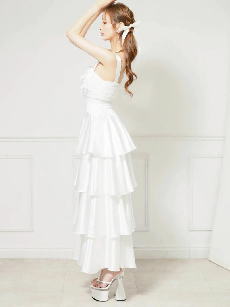 4. [Angel-R/エンジェルアール] 高級 バースデー ノースリーブ バストリボン フリルスカート ウエストシャーリング ガーリー Aラインロングドレス