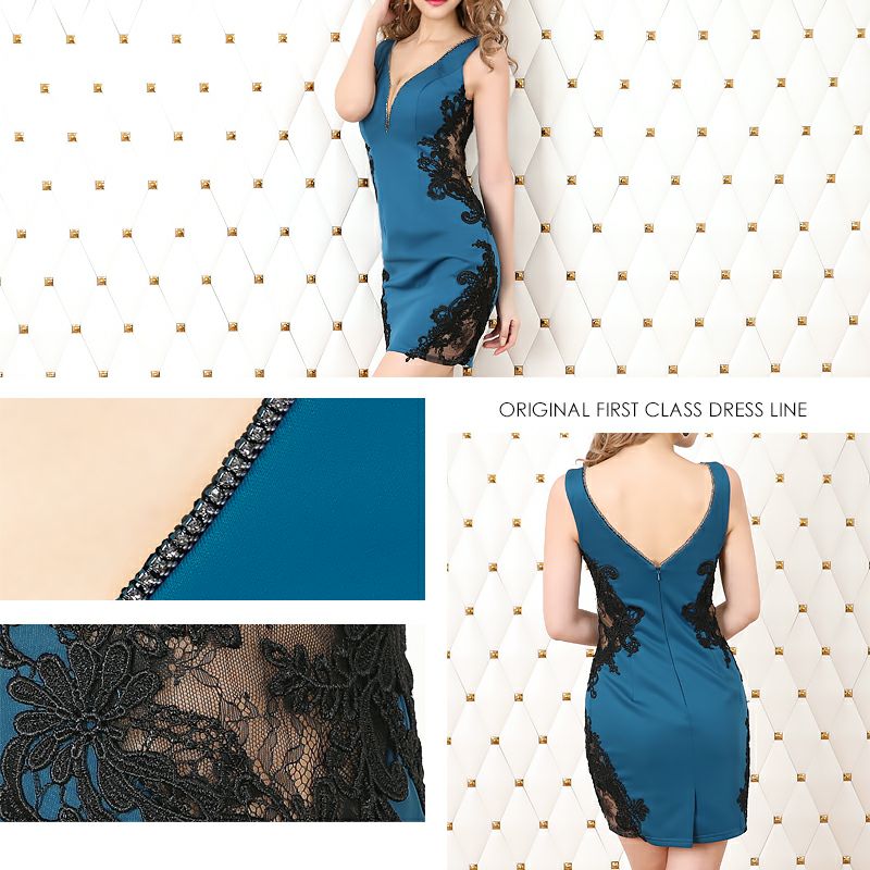 5. [Angel-R/エンジェルアール] 高級バストシアーブラックレース切替ノースリーブタイトミニドレス