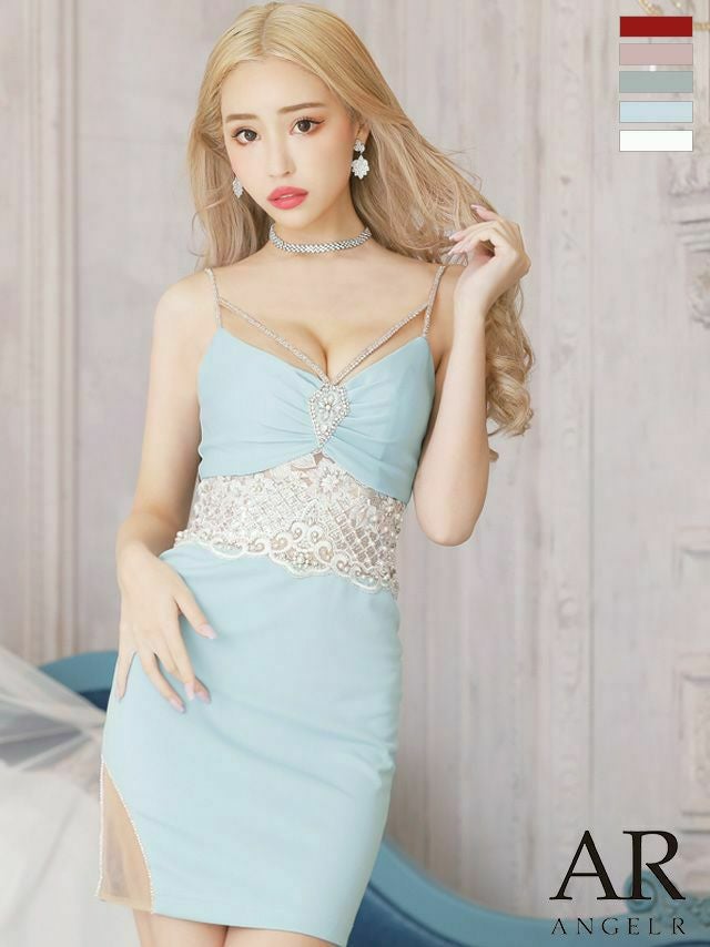 4. [Angel-R/エンジェルアール] 高級ダイヤビジューウエストレースキャミソールタイトミニドレス