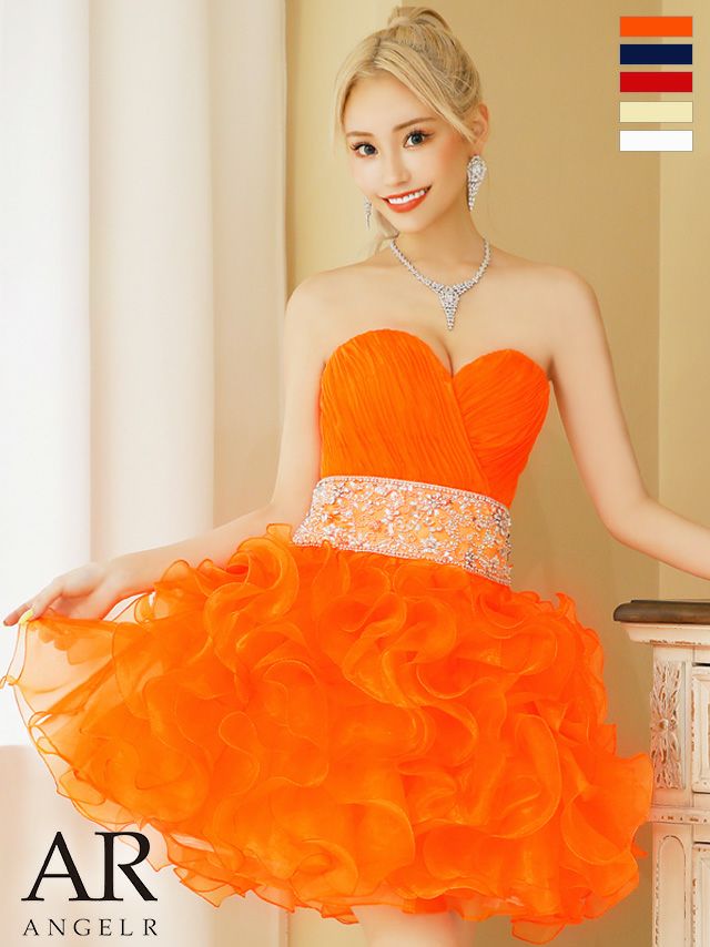 ボリューム溢れるフリルがゴージャス☆ [Angel-R/エンジェルアール] 高級ウエストビジューフリルバックレースアップベアトップフレアミニドレス