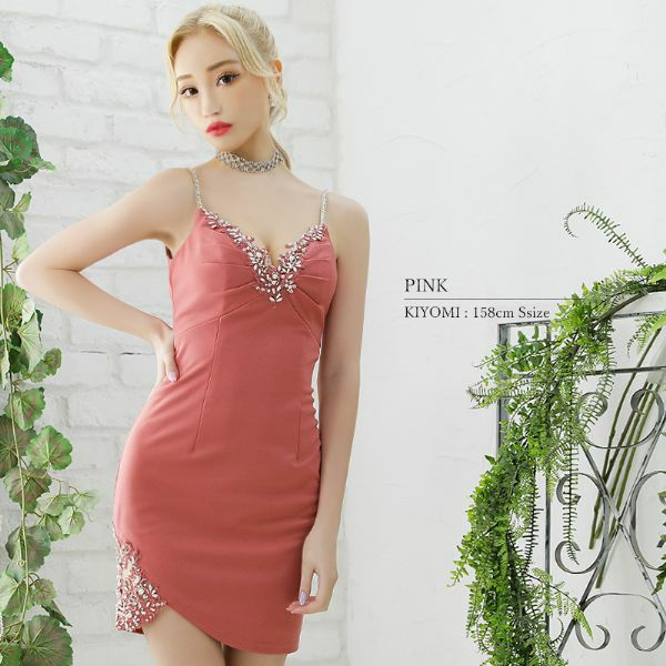 5. [Angel-R/エンジェルアール] 高級リーフ刺繍バストパールビジューキャミソールタイトミニドレス