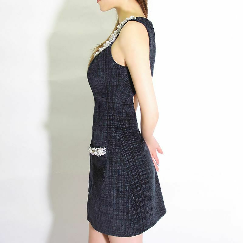 5. SALE [Angel-R/エンジェルアール] 高級ビジュー付き ノースリーブ フロントジップ ツイード フレアミニドレス