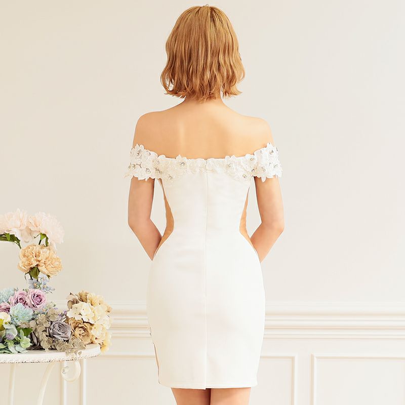 3. SALE [Angel-R/エンジェルアール] 高級オフショルダーレースメッシュくびれワンカラータイトミニドレス