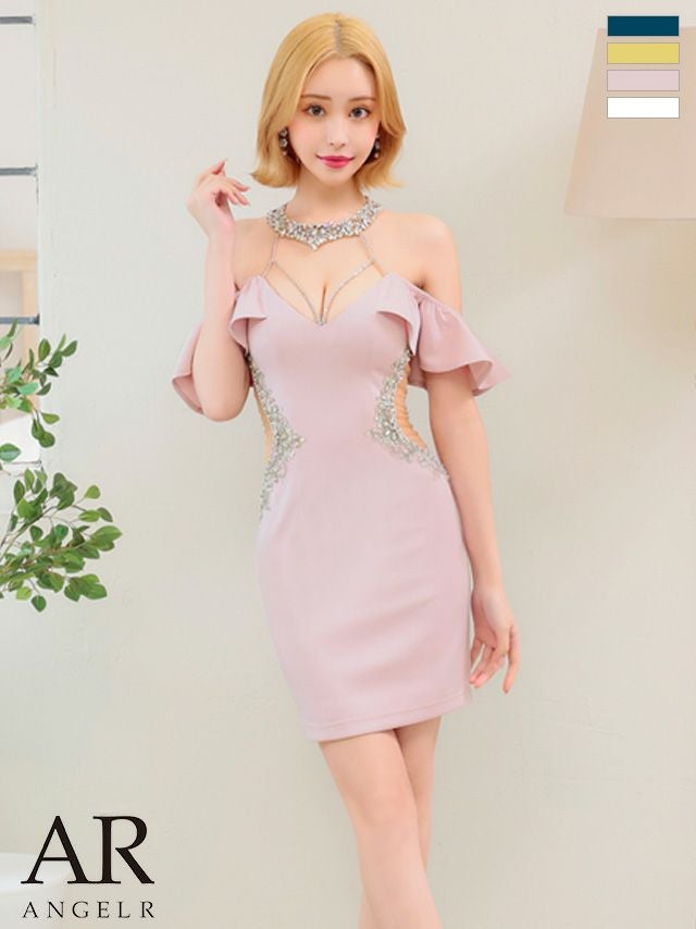 4. [Angel-R/エンジェルアール] 高級オフショルダー肩出し 二の腕カバービジューくびれタイトミニドレス