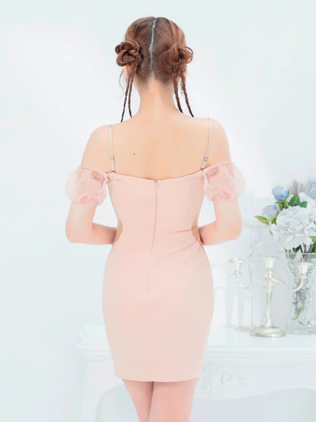 5. [Angel-R/エンジェルアール] 高級 オフショルダー くびれ バストカット フラワービジュー 谷間魅せ タイトミニドレス