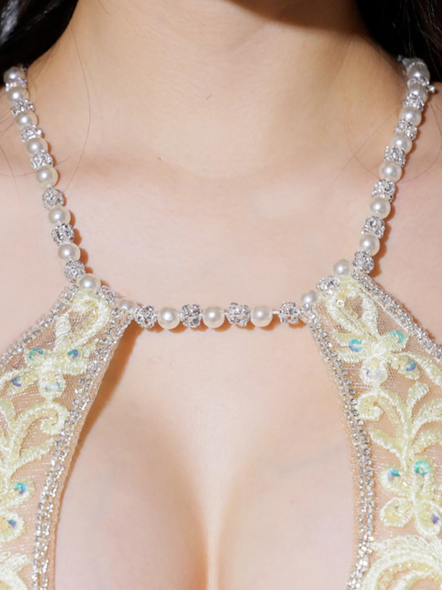 ネックパールでCUTEなお顔周りに♡ 予約商品【1月下旬入荷予定】[Angel-R/エンジェルアール] 高級 ホルターネック パール バストカット レース シアースリット タイトミニドレス