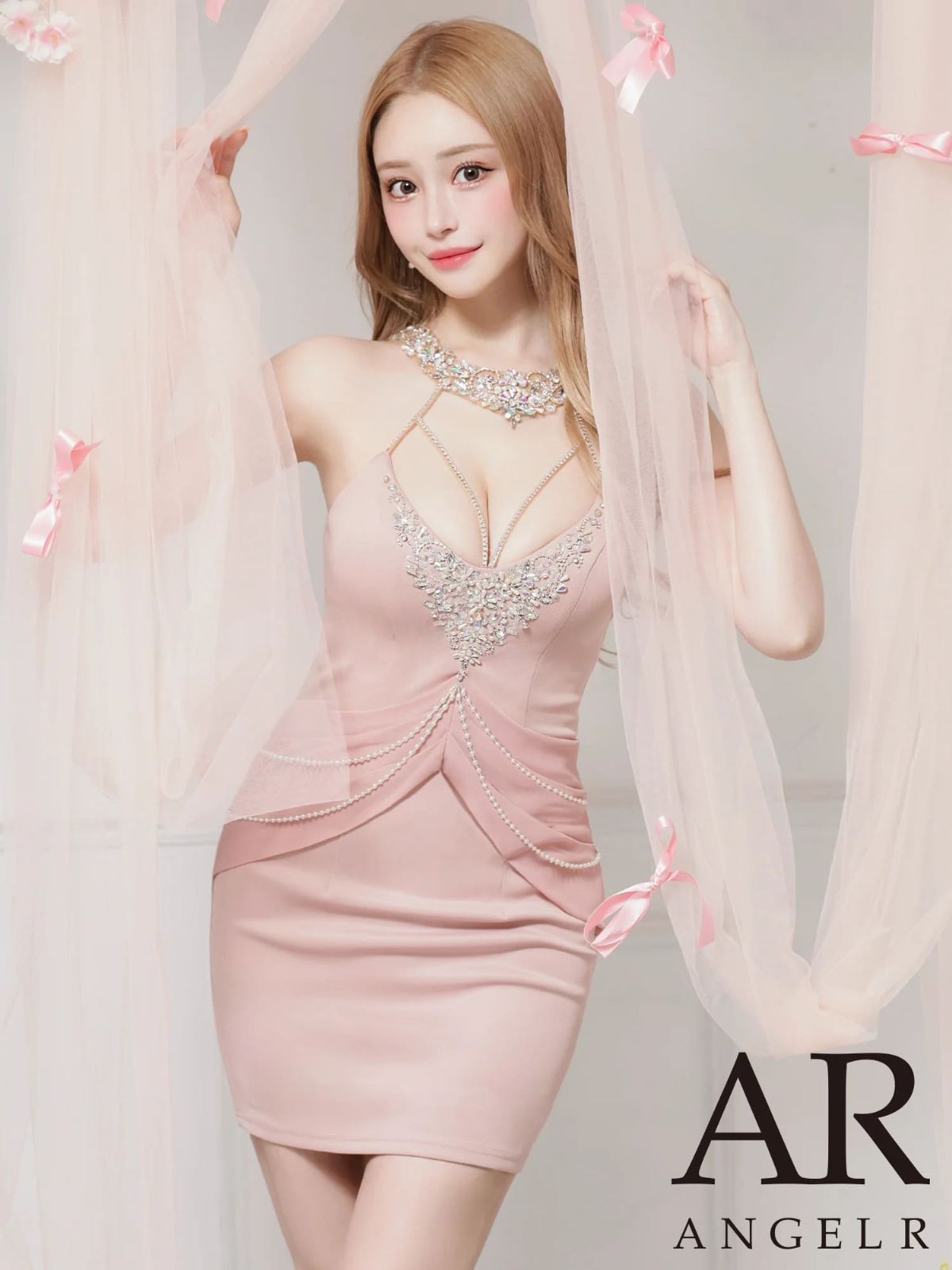 5. 予約商品【1月下旬入荷予定】[Angel-R/エンジェルアール] 高級 ビジューホルターネック バストコード 谷間魅せ パールチェーン セクシー タイトミニドレス