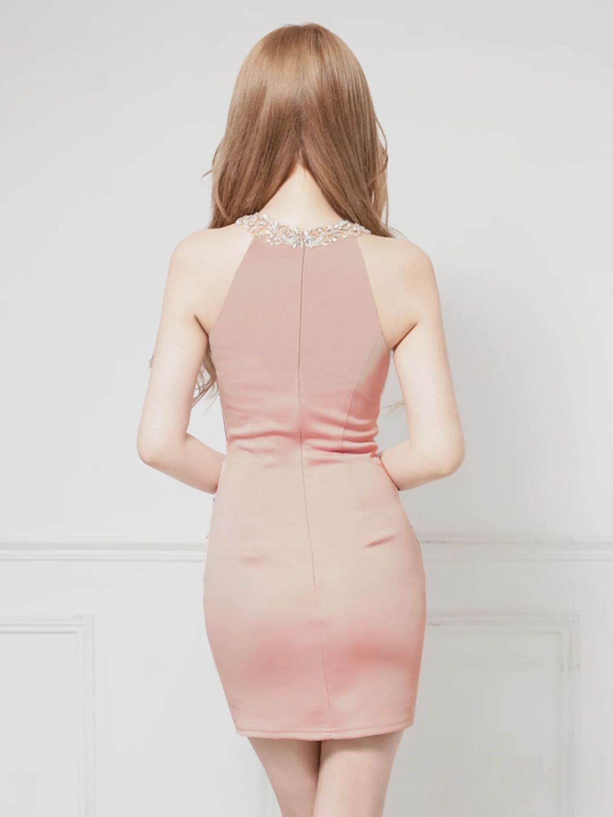 4. 予約商品【1月下旬入荷予定】[Angel-R/エンジェルアール] 高級 ビジューホルターネック バストコード 谷間魅せ パールチェーン セクシー タイトミニドレス