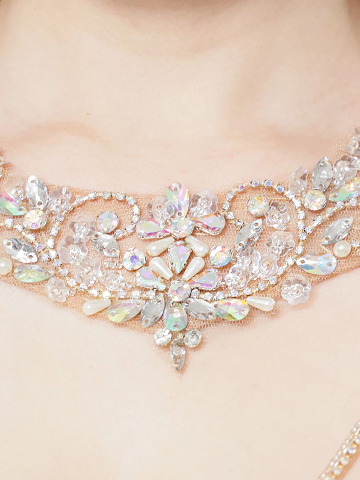 贅沢にビジューが煌めく♡ 予約商品【1月下旬入荷予定】[Angel-R/エンジェルアール] 高級 ビジューホルターネック バストコード 谷間魅せ パールチェーン セクシー タイトミニドレス