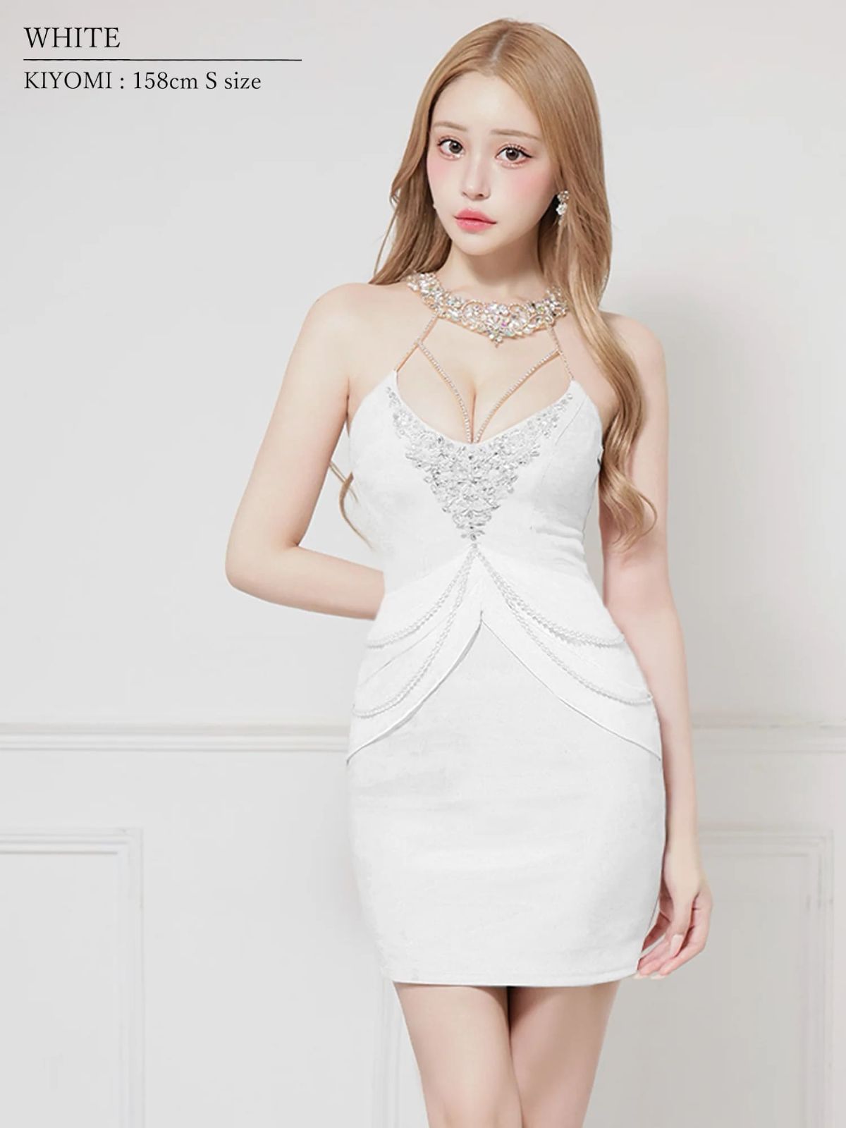 3. 予約商品【1月下旬入荷予定】[Angel-R/エンジェルアール] 高級 ビジューホルターネック バストコード 谷間魅せ パールチェーン セクシー タイトミニドレス