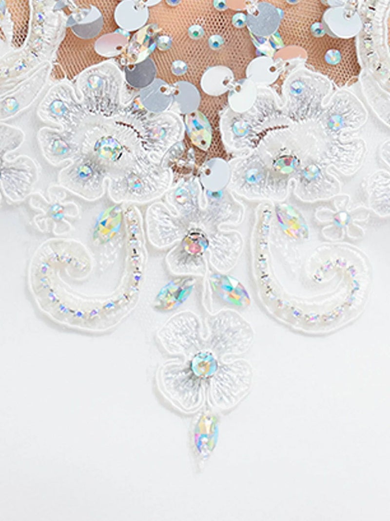 6. [Angel-R/エンジェルアール] 高級 袖あり フラワーレース バストシースルー ビジュー 谷間魅せ タイトミニドレス