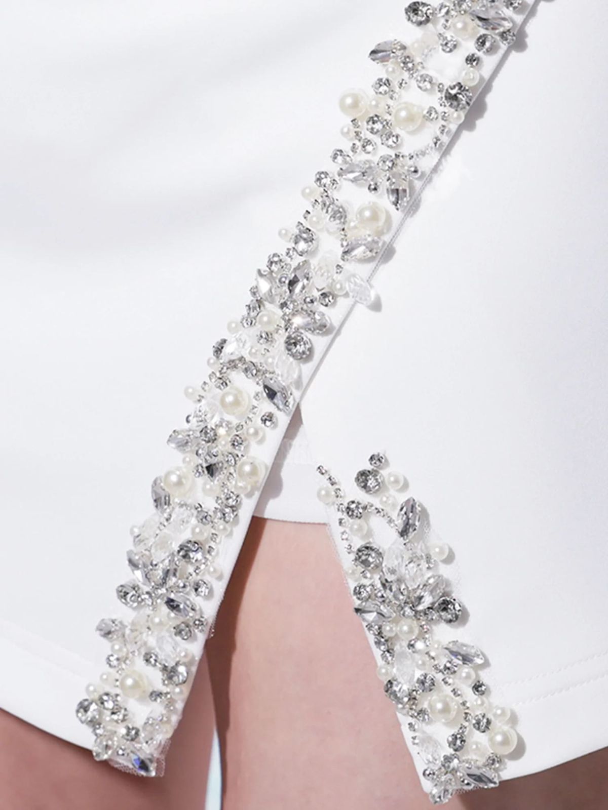 4. [Angel-R/エンジェルアール] 高級 アシンメトリー 肩出し 二の腕カバー ビジュー ラップ風 アシメスリット セットアップ タイトミニドレス