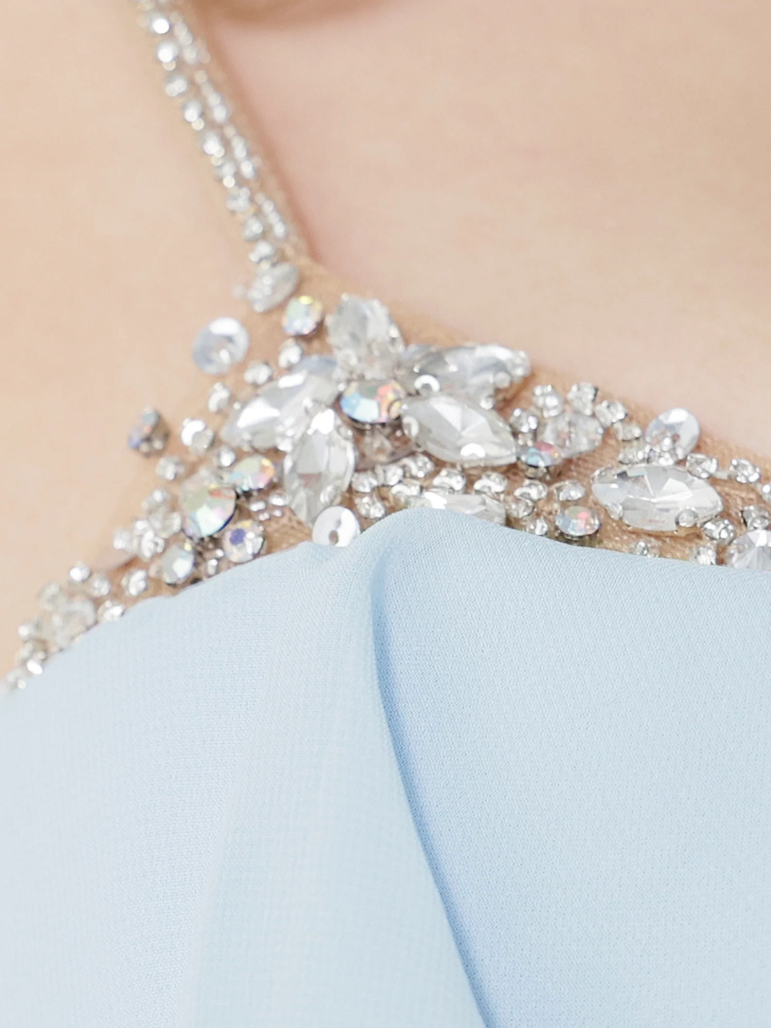 3. [Angel-R/エンジェルアール] 高級 キャミソール 胸元フリル ビジュー 背中魅せ ラップ風 スリット タイトミニドレス