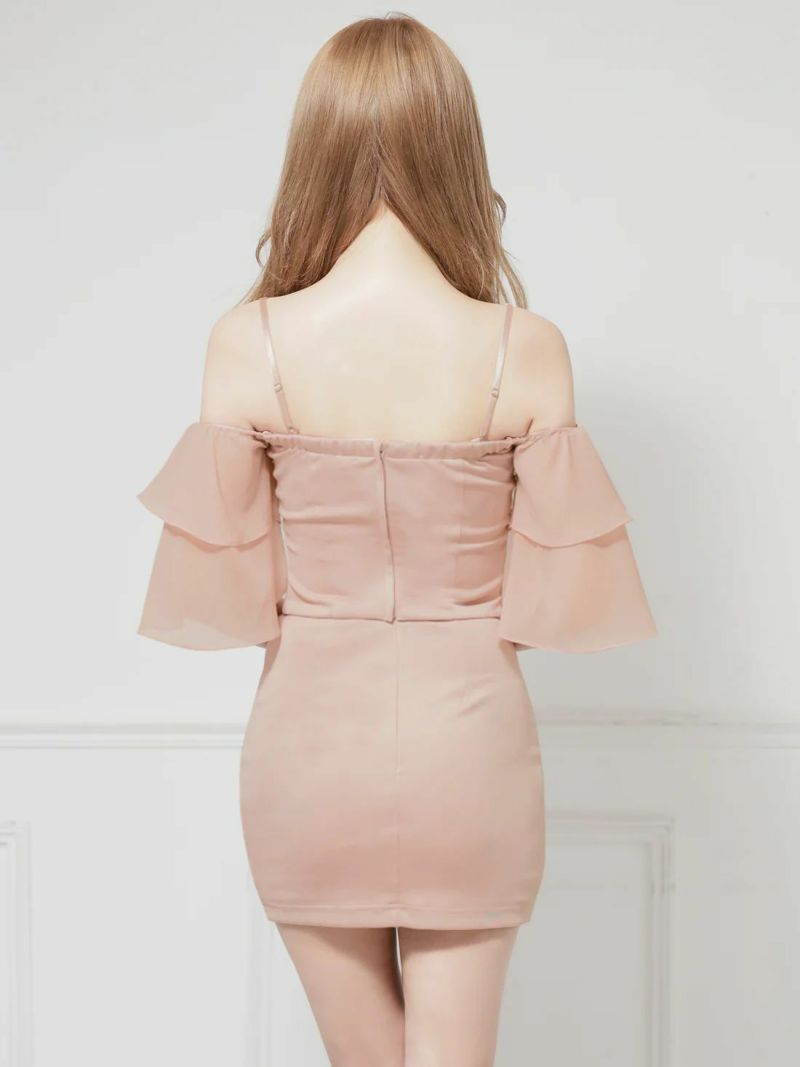 4. [Angel-R/エンジェルアール] 高級 2way オフショルダー セットアップ シフォンスリーブ バストカット ビジュー タイトミニドレス