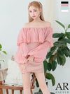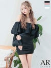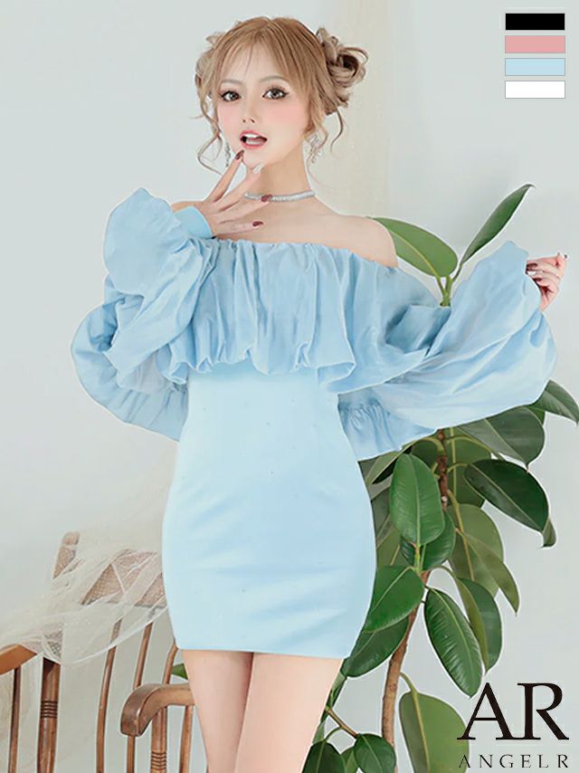 可愛さとセクシーさを欲張りアピール☆ [Angel-R/エンジェルアール] 高級パフスリーブ付き胸元フリルビジューオフショルダータイトミニドレス