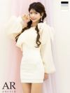 5. [Angel-R/エンジェルアール] 高級2way長袖 袖あり肩出し 二の腕カバードット柄フリルリボンタイトミニドレス