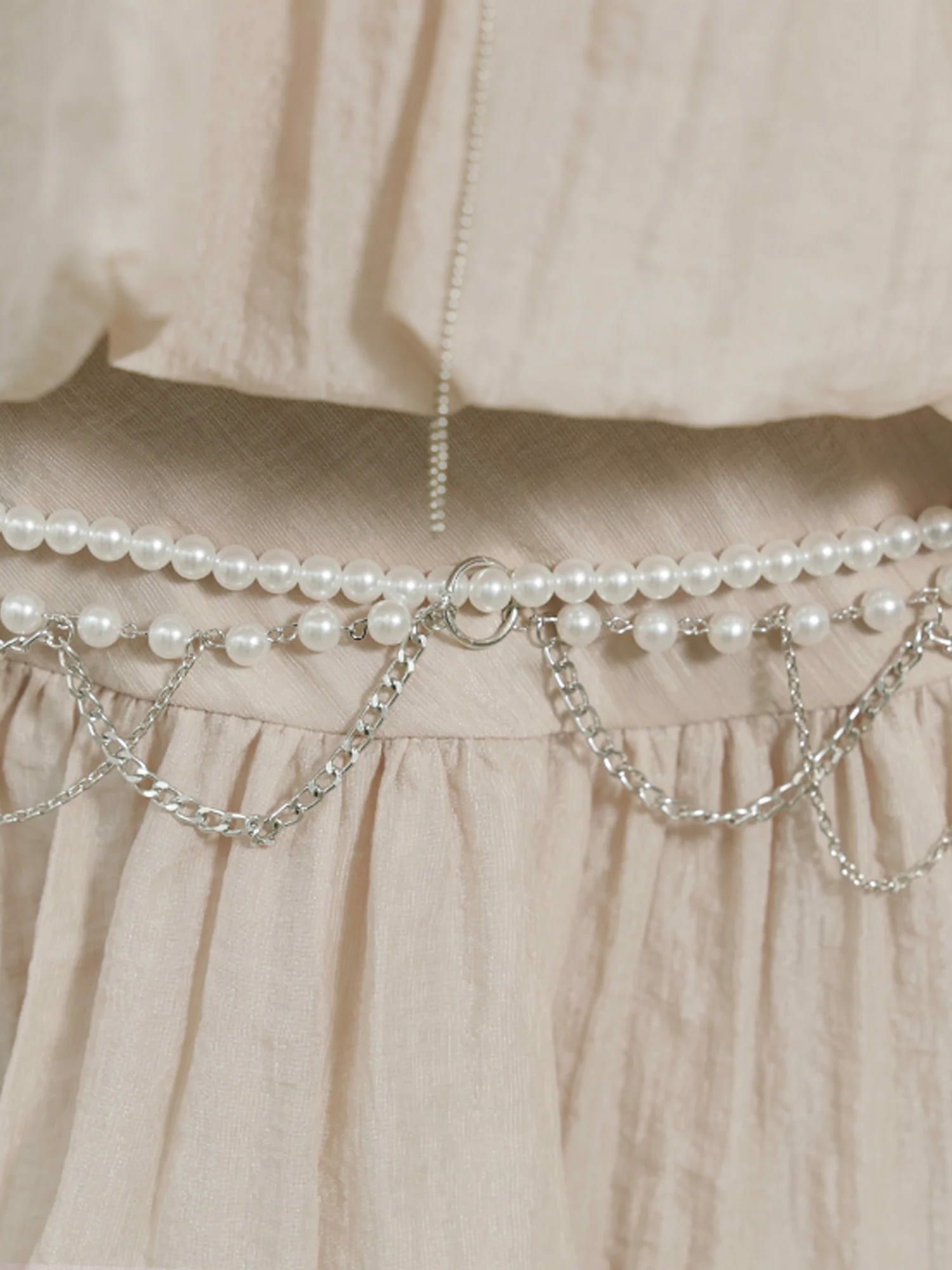 パールチェーンが可愛くアクセントに♡ [Angel-R/エンジェルアール] 高級 ホルターネック シフォン ウエストベルト パールチェーン フレアミニドレス