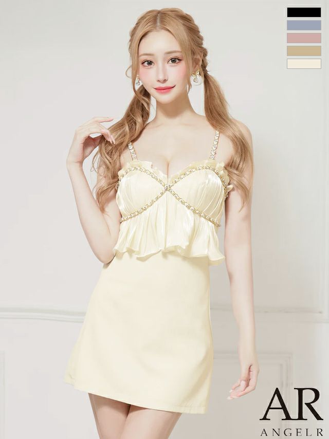 いろんな着こなしを楽しめる♡ [Angel-R/エンジェルアール] 高級 3way 胸元フリル ベアデザイン ビジューチェーン 背中魅せ フレアミニドレス