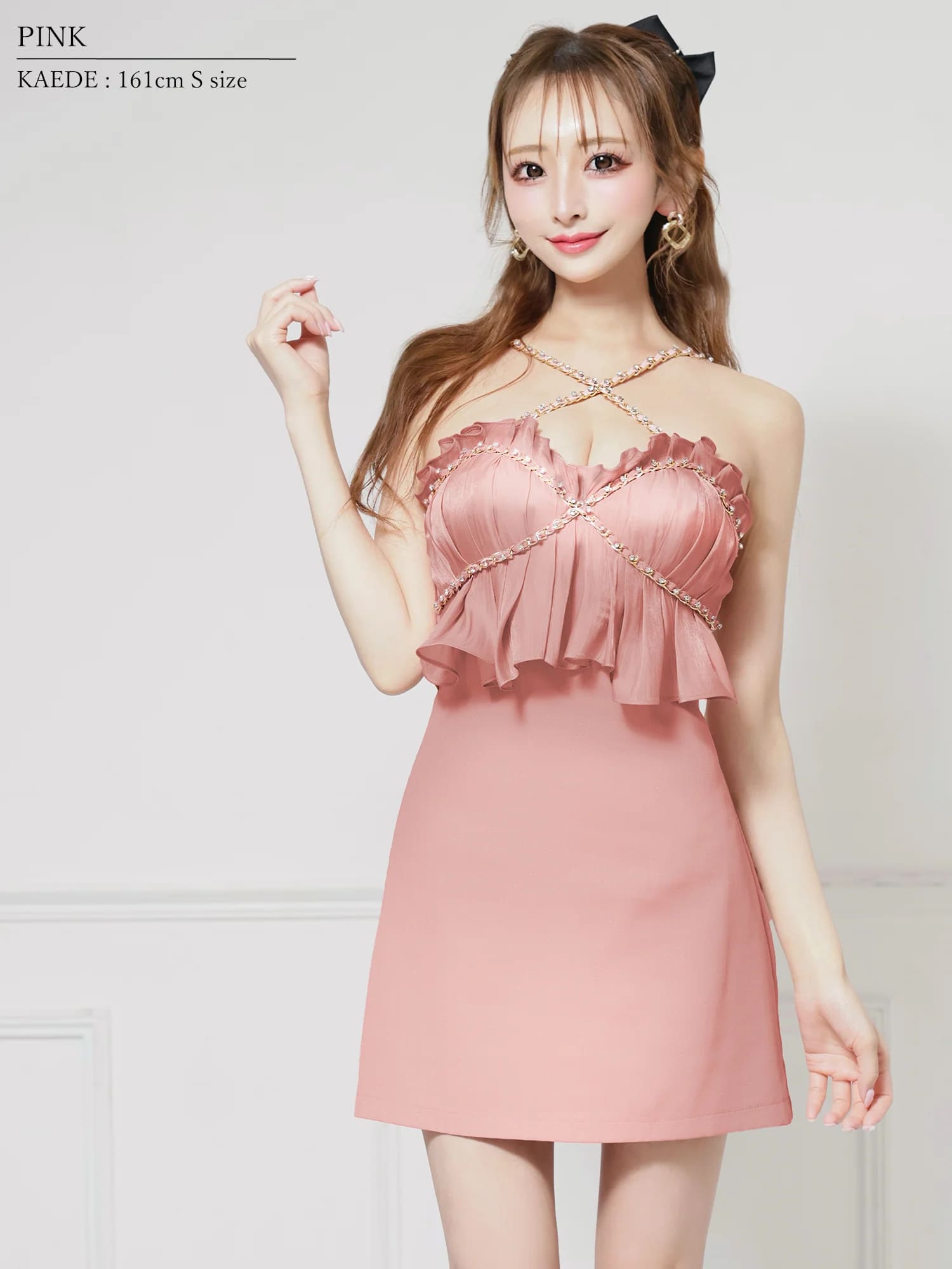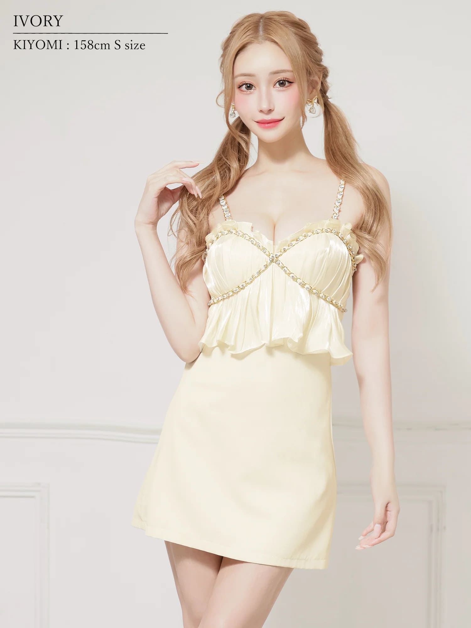 可愛さの中にも上品さ漂う♡ [Angel-R/エンジェルアール] 高級 3way 胸元フリル ベアデザイン ビジューチェーン 背中魅せ フレアミニドレス