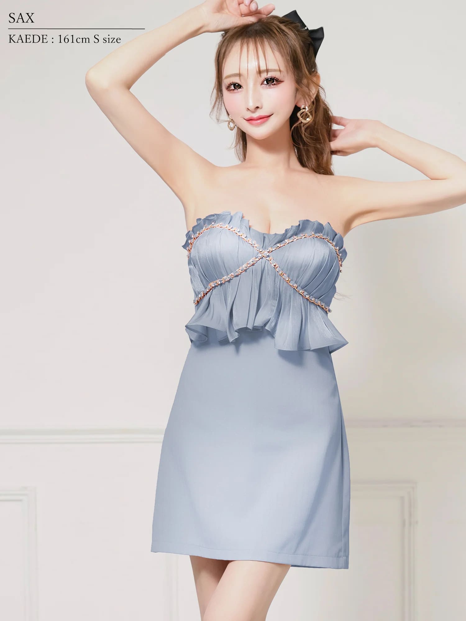4. [Angel-R/エンジェルアール] 高級 3way 胸元フリル ベアデザイン ビジューチェーン 背中魅せ フレアミニドレス