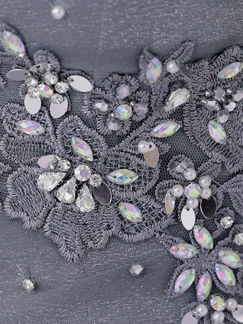 4. [Angel-R/エンジェルアール] 高級 ホルターネック ラメデザイン ビジュー フラワーレース メッシュ タイトミニドレス