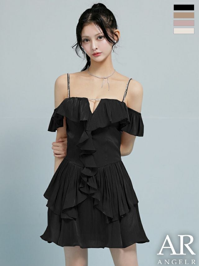 5. 予約商品【4月中旬入荷予定】[Angel-R/エンジェルアール] 高級 ブランド Aラインミニドレス オフショルダー 2way バストカット ビジュー フリル シフォン