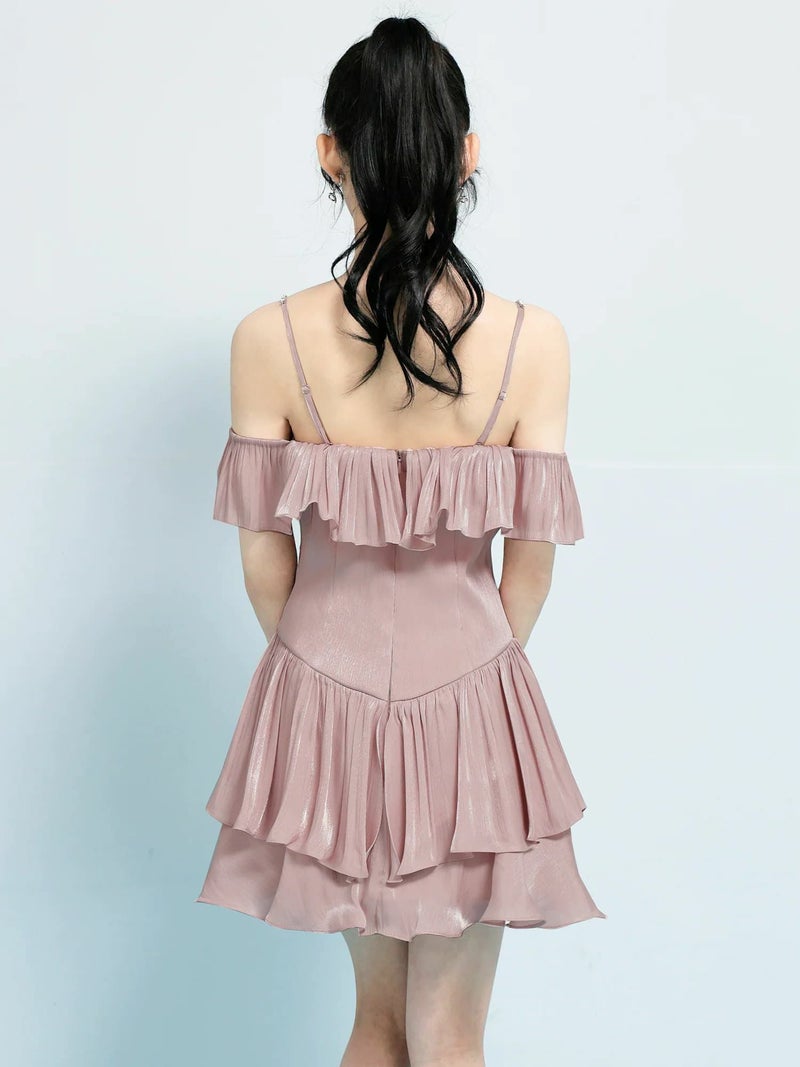 3. 予約商品【4月中旬入荷予定】[Angel-R/エンジェルアール] 高級 ブランド Aラインミニドレス オフショルダー 2way バストカット ビジュー フリル シフォン