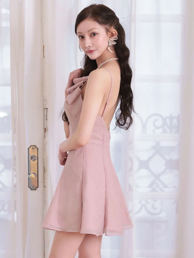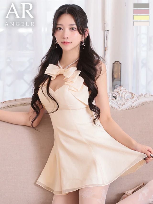 4. [Angel-R/エンジェルアール] 高級 ブランド Aラインミニドレス ホルターネック キャミソール 谷間 リボン バストカット パール