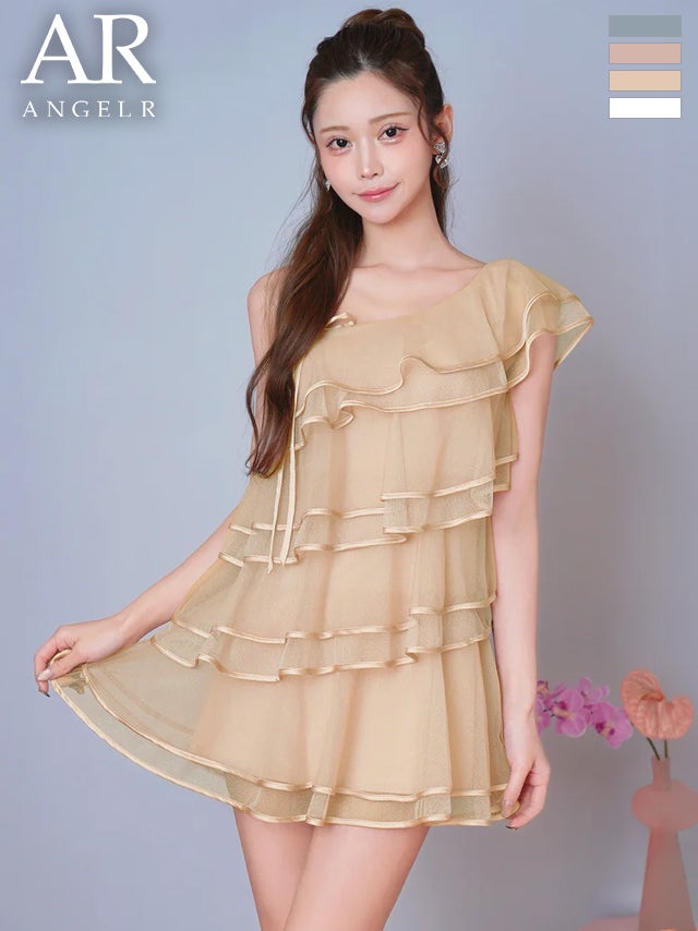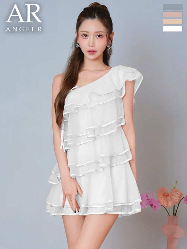 4. 予約商品【5月中旬入荷予定】[Angel-R/エンジェルアール] 高級 ブランド Aラインミニドレス ワンショルダー フリル リボン