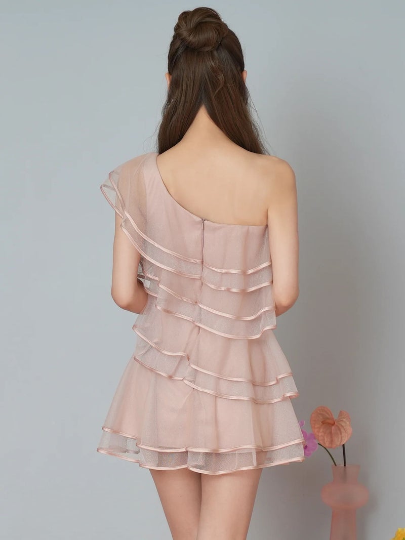 4. ワンショルダーミニ高級ドレス