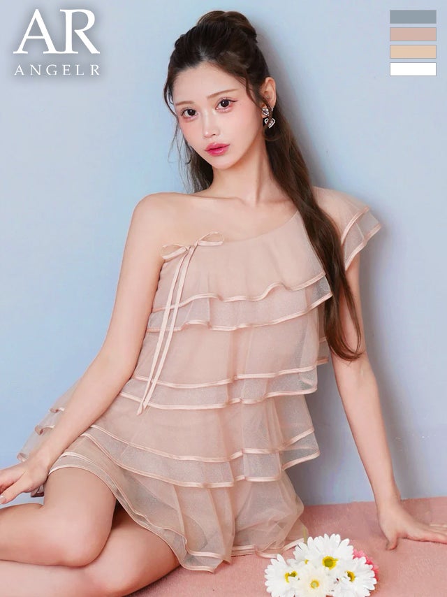 キャバドレス Angel-R エンジェルアール 高級 ブランド Aラインミニドレス ワンショルダー フリル リボン